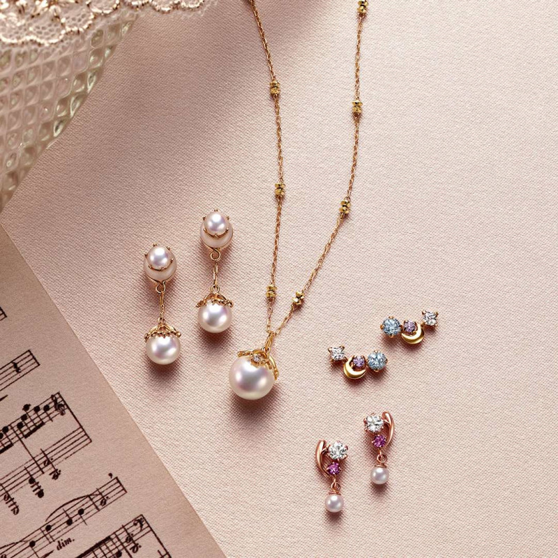 艶めくアコヤパールと、それを包むヤドリギデザインのキャップが、コーデを繊細でクラシカルな印象に🤍