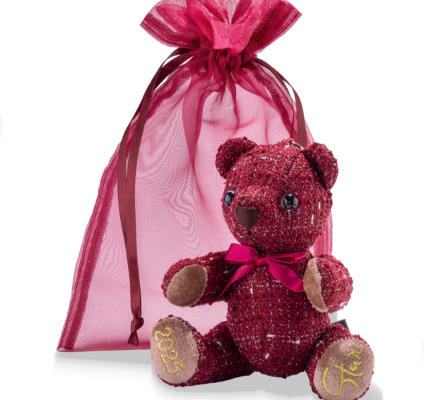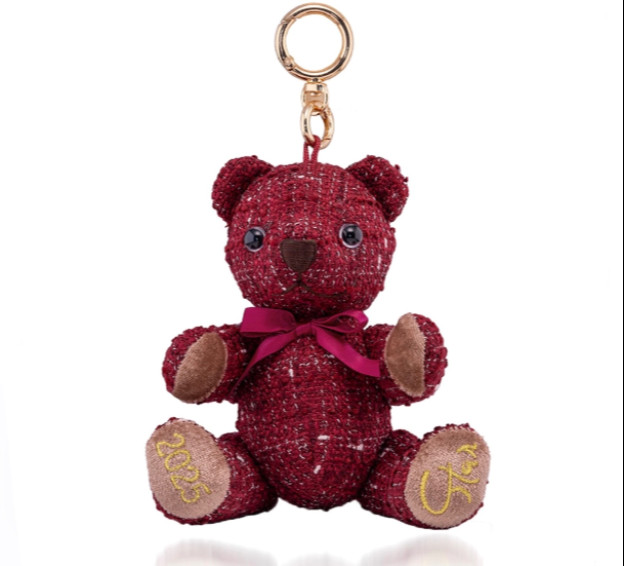 2025年のホリディベアはトレンドのツイード素材に取り外し可能なキーリング付き、バッグチャームとして持ち歩くのもおすすめです。