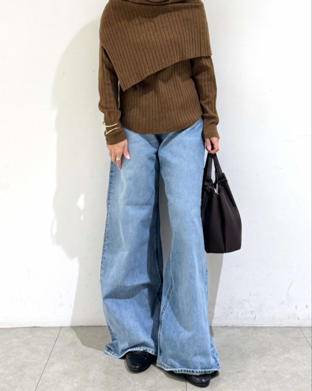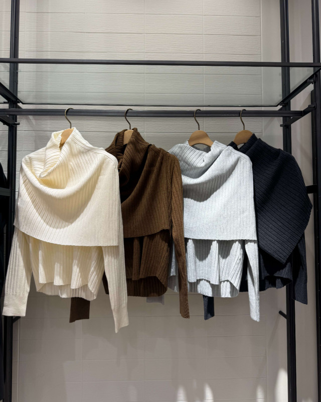 ベーシックなリブニットとアシンメトリーなスヌードのセットで、取り外し可能な2WAY仕様。