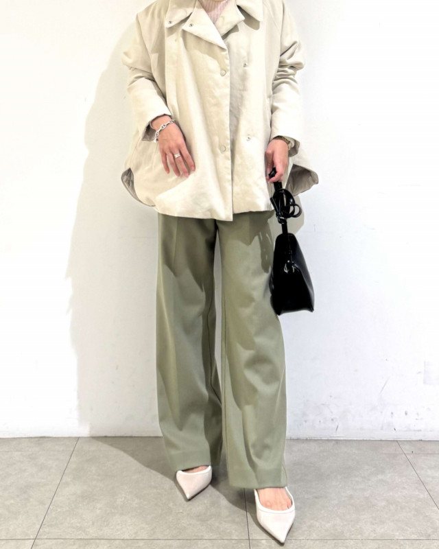 ヒールやフラットシューズを合わせれば、オンオフ問わず活躍する万能アウターです。