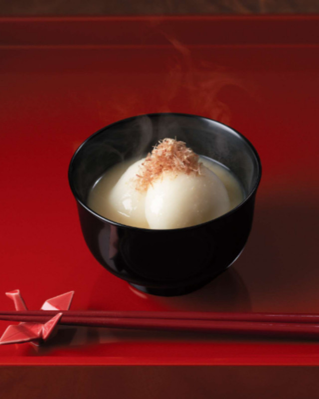 昆布のうまみが生きた「特製だし」と西京味噌使用の「専用つゆ」でつくるお雑煮の素。