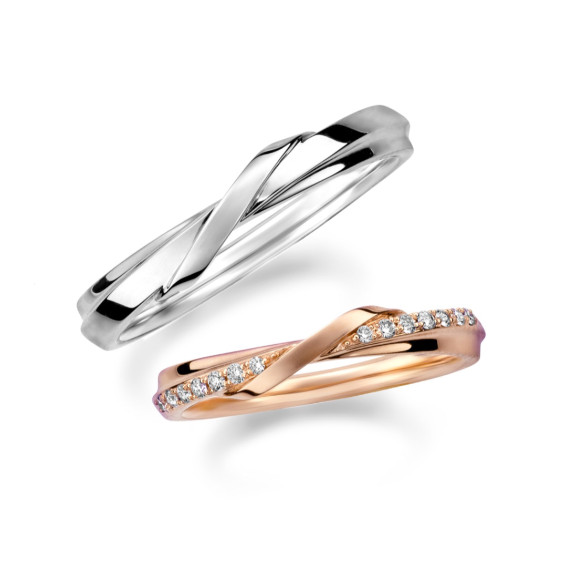 BOW(リボン)モチーフに込められた“絆”や“約束”で、ふたりが出逢い結ばれた奇跡を表現したマリッジリング。