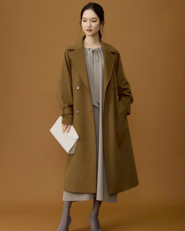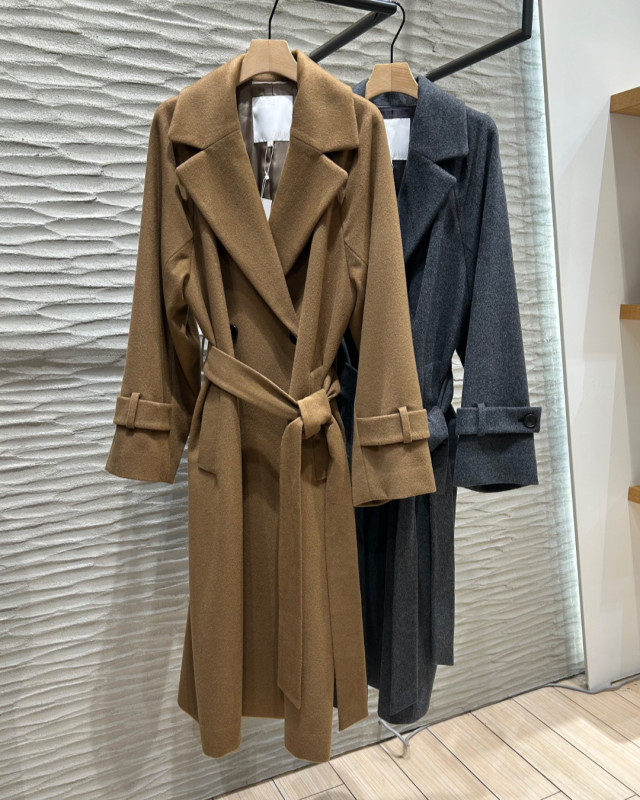 肩回りに柔らかくなじむラグランスリーブが大人の抜け感を感じられ、バサっと羽織っても、共布のベルトでウエストマークしてもサマになります。