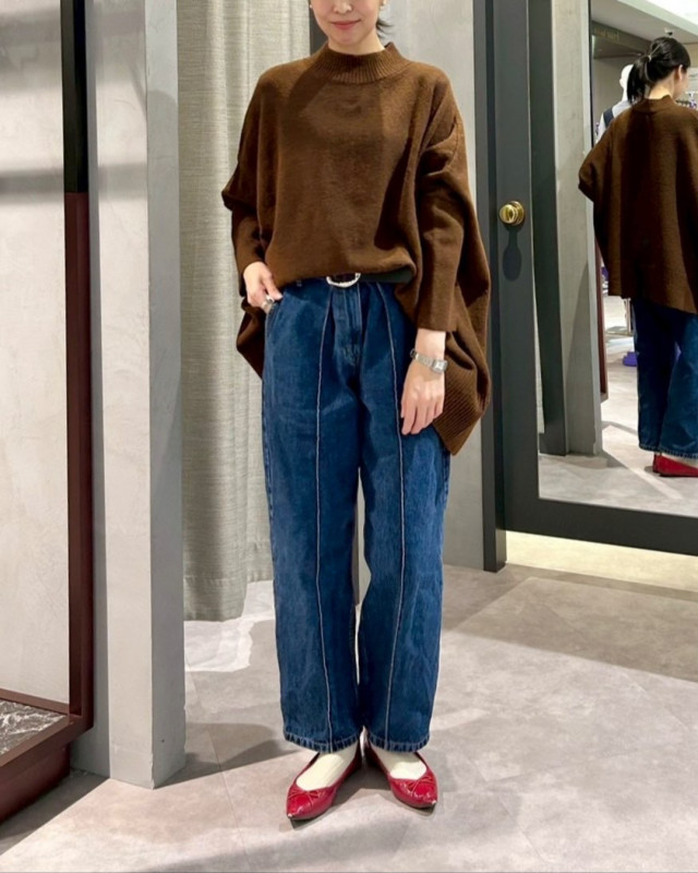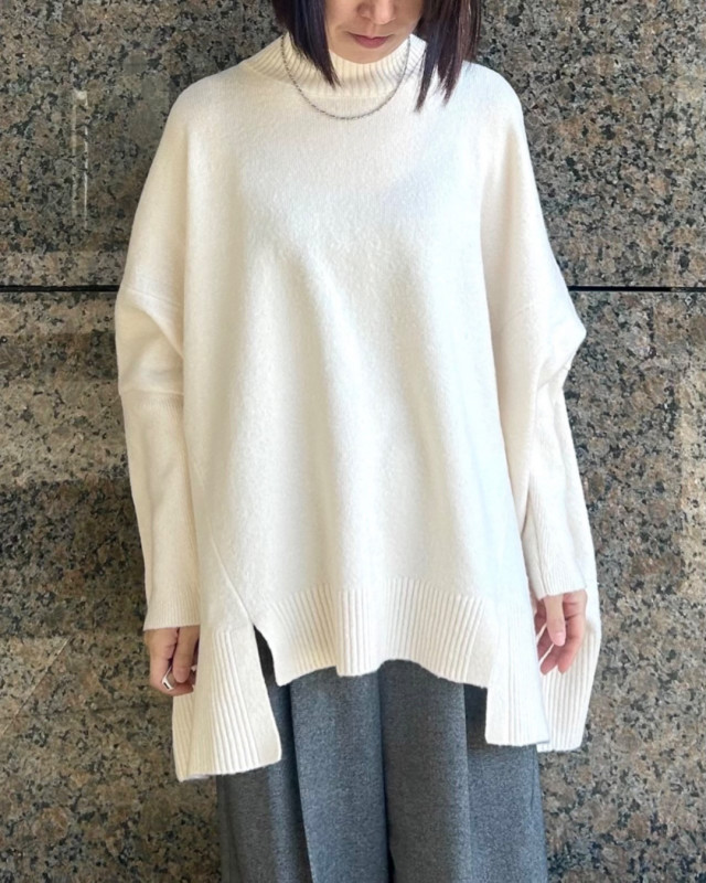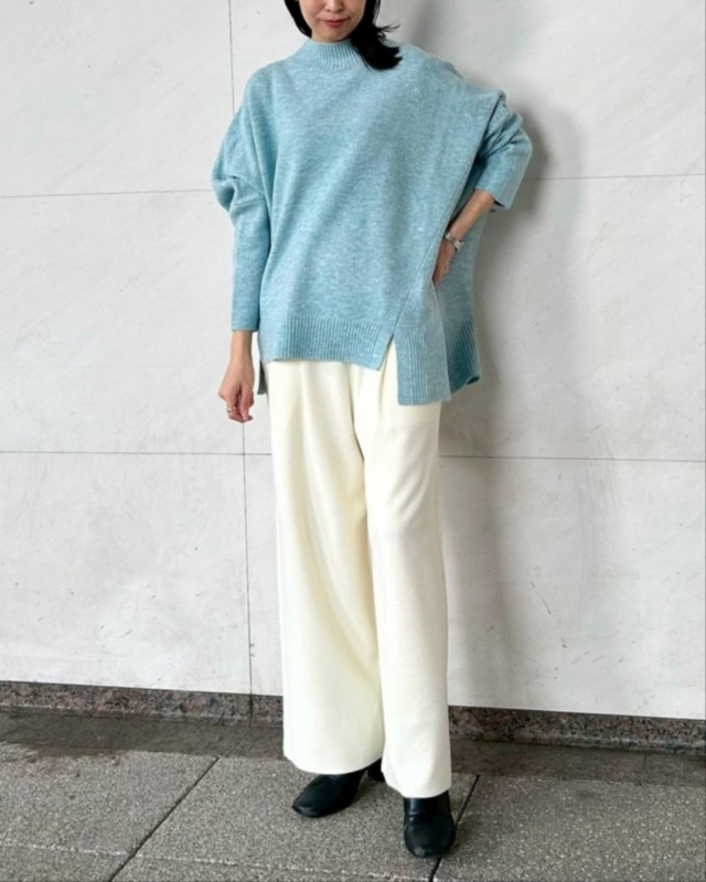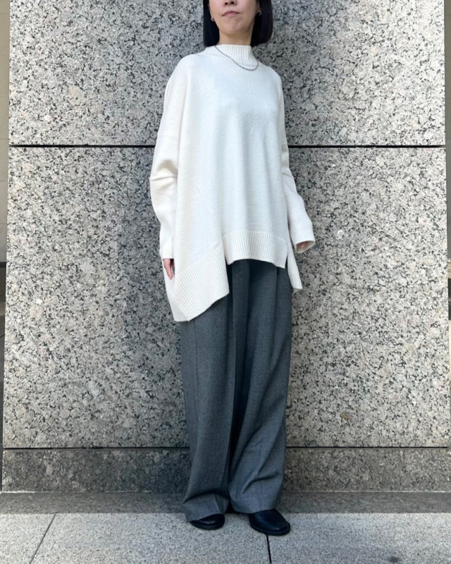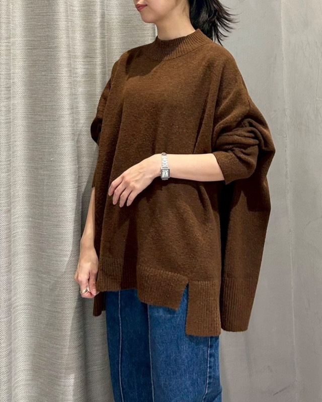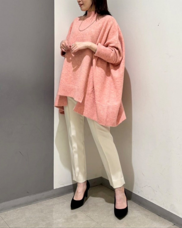 ゆったりとしたシルエットで、リラックス感がありつつもきれいに見えるオーバーサイズニット。