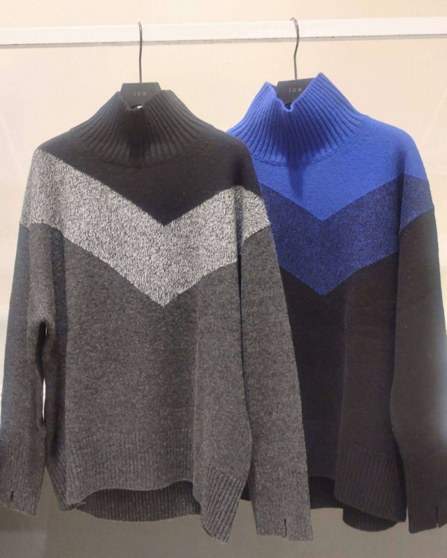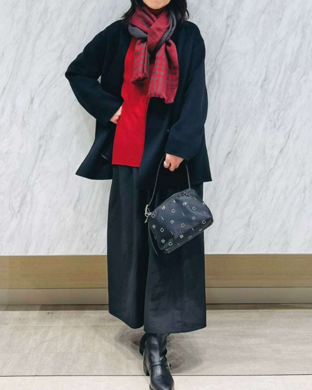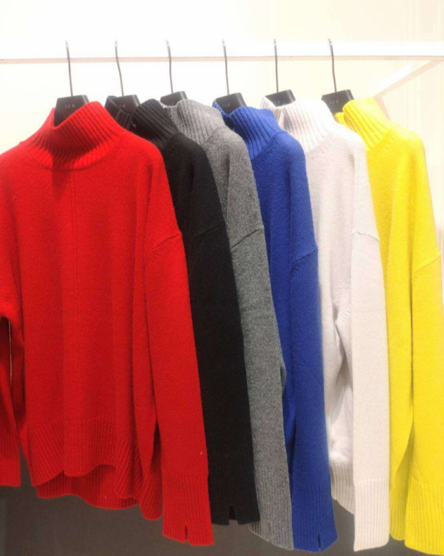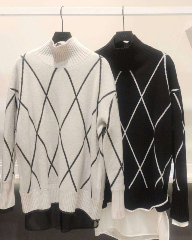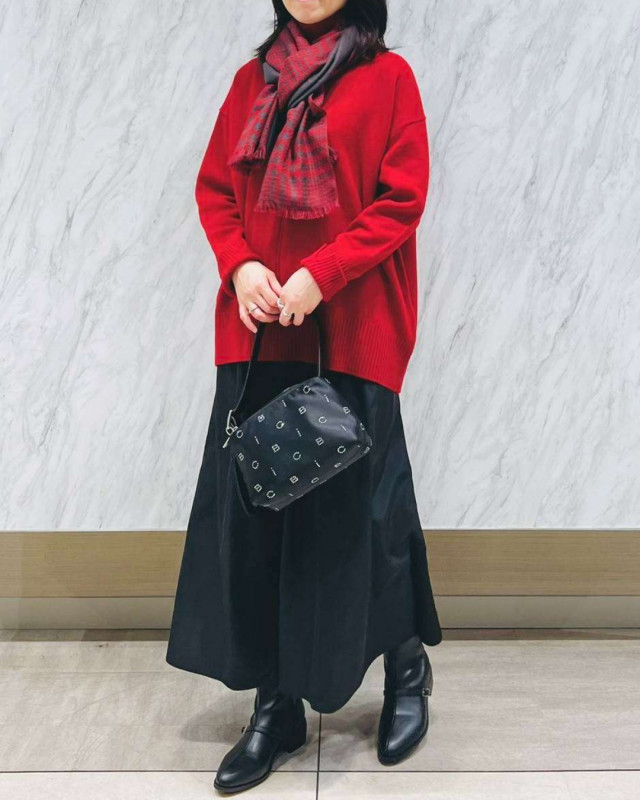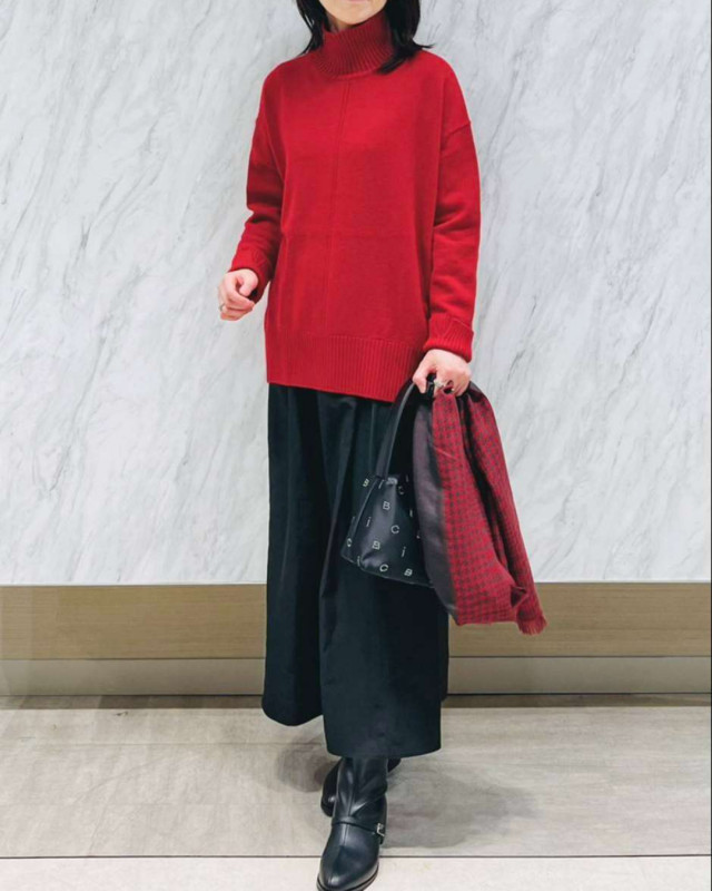 綺麗に立ち上がるネックや袖口のスリットでエッジをプラスしたスッキリ見えするバランスで毎年人気のニット♪