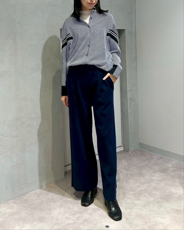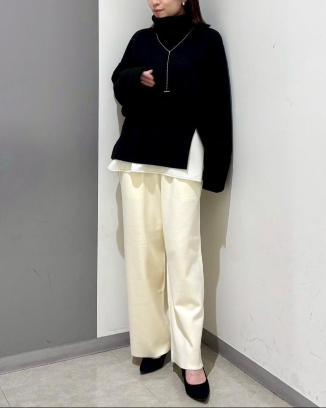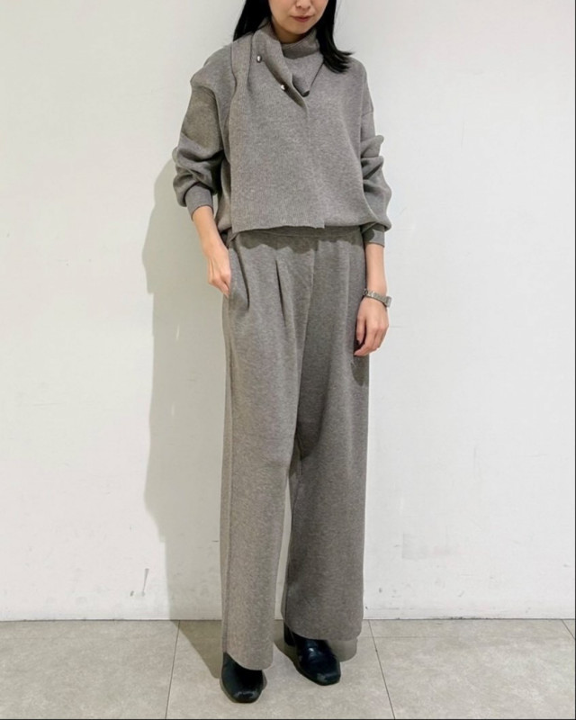 同素材のニットタックパンツは、フロントタックできれいめな印象に。