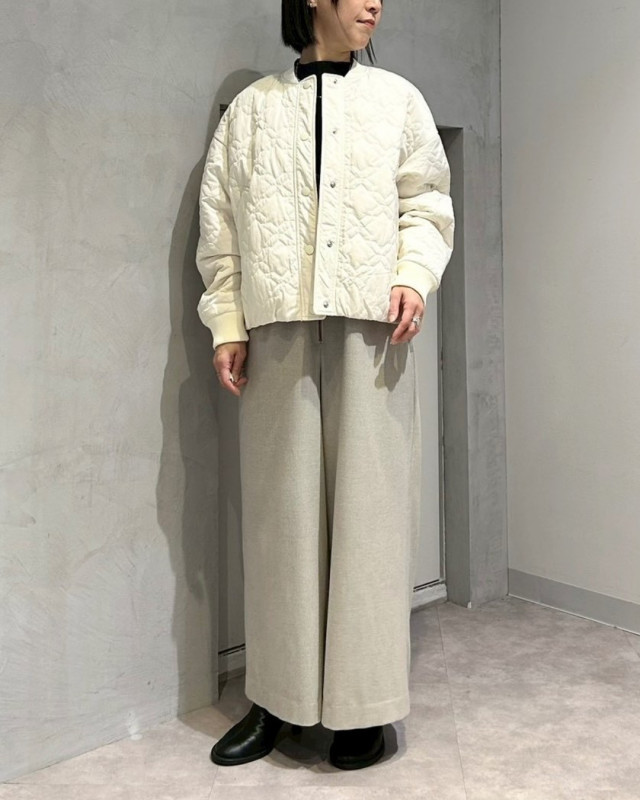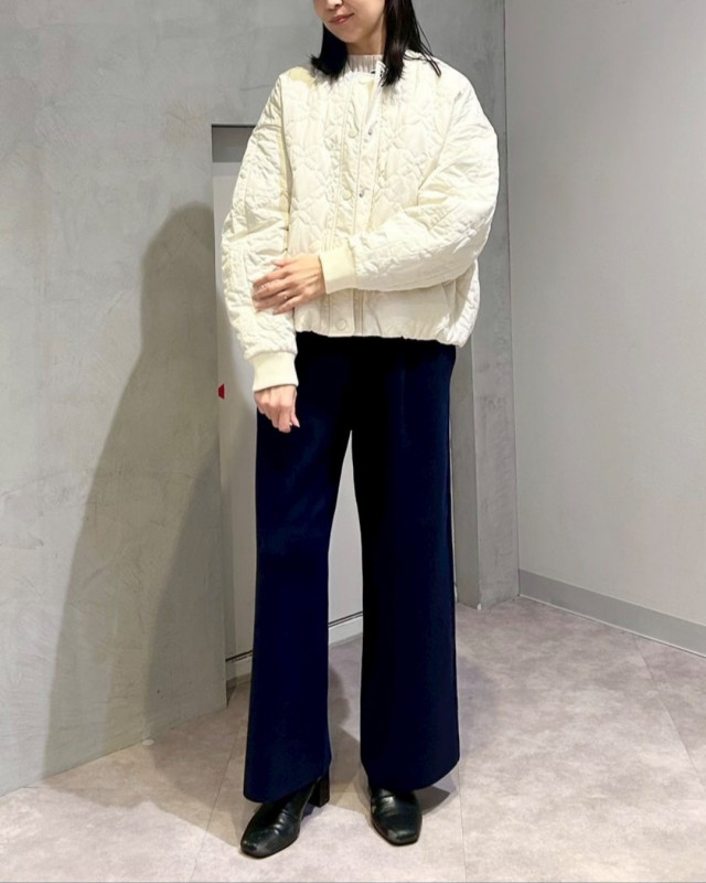 さっと羽織れる軽さと、程よいボリューム感が魅力の中わたブルゾン。