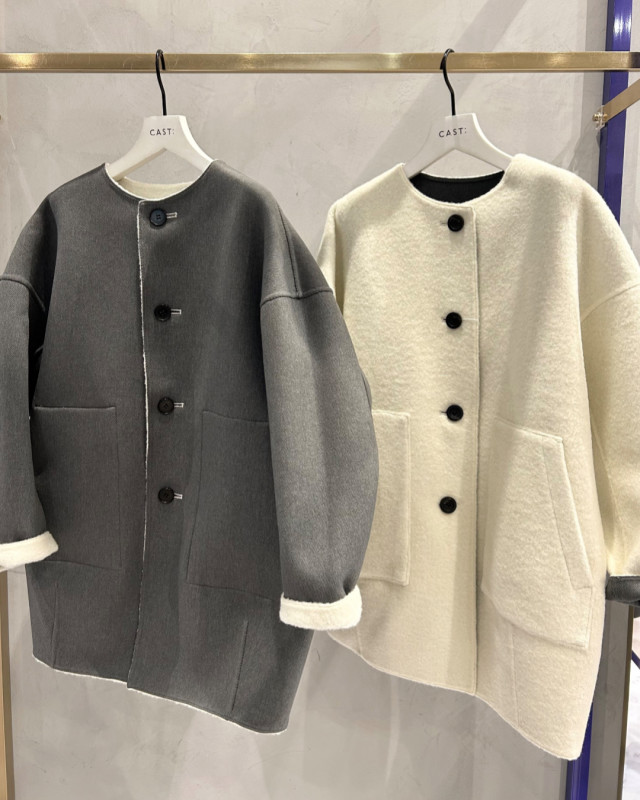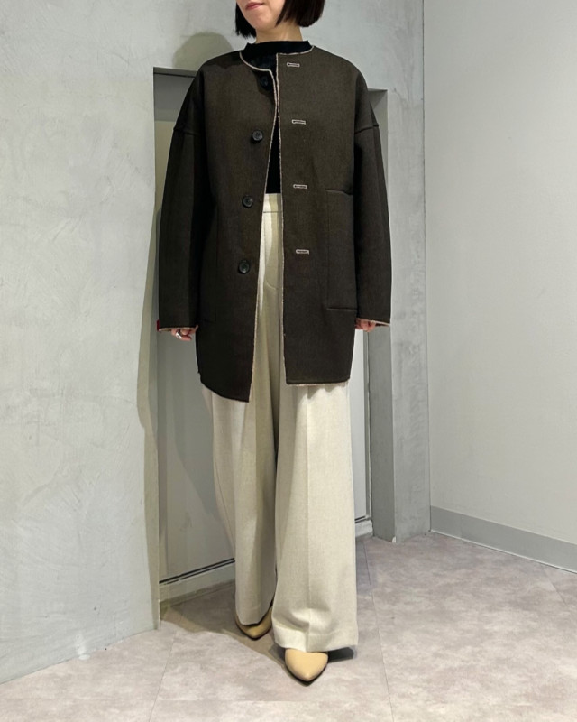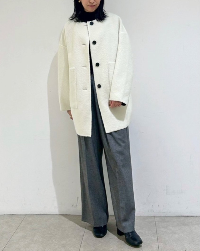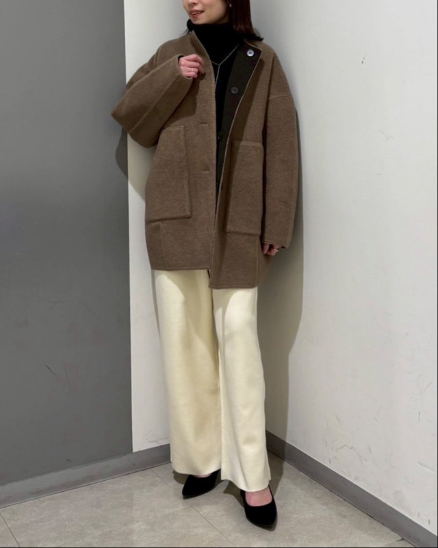 ウール調とボア面で違う表情を楽しめるので、1着でコーデの幅がぐっと広がります。