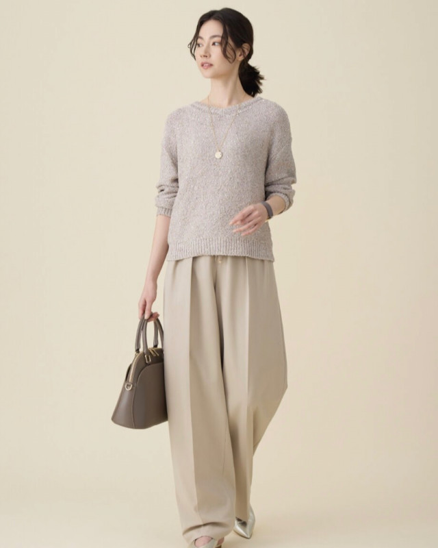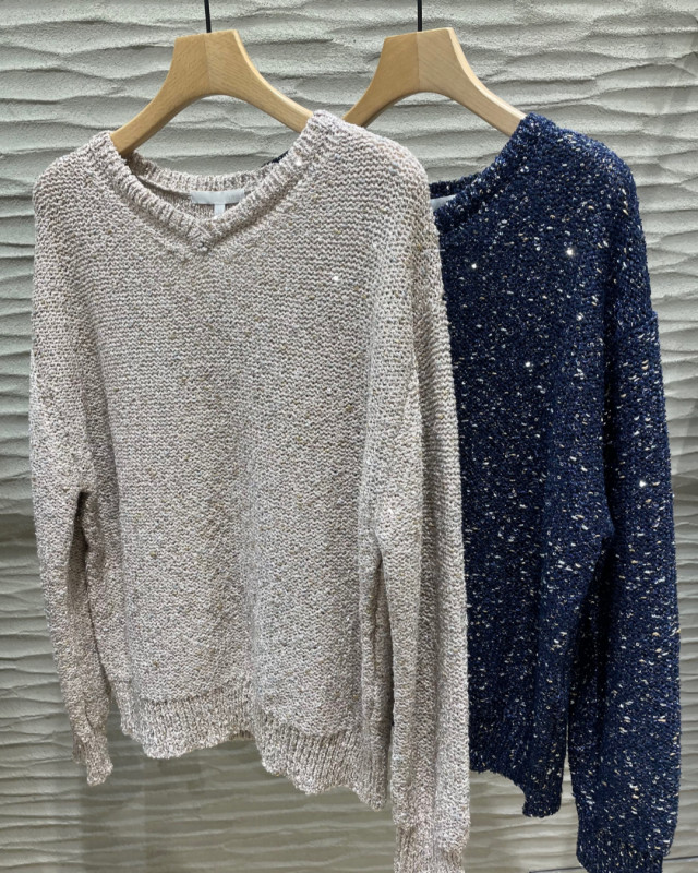 程よいラメとスパンコールで1枚でも着映えする、華やかな印象のニット。
