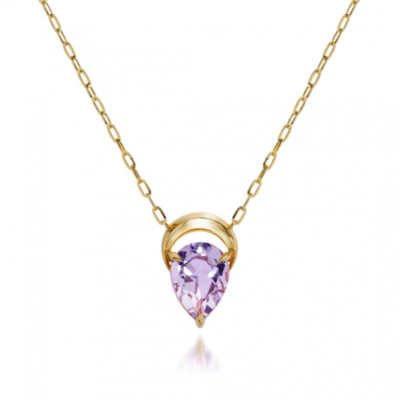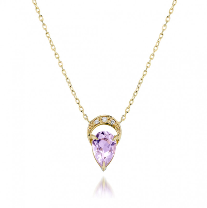 下弦の月をイメージした地金の造形とアメシストの洗練された美しいデザイン“CRESCENT DROP”ネックレス。
