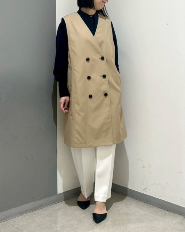 ジレはウエストをほんのり絞り、すっきりとした女性らしい印象に仕上げています。
