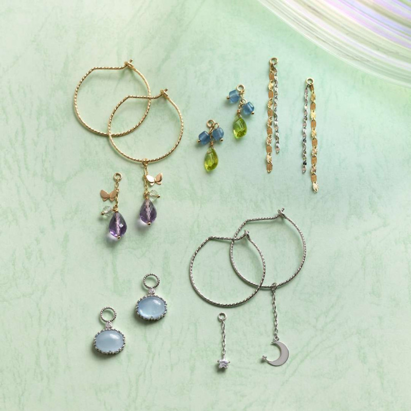 シンプルなフープピアスベースはどのチャームにも合わせやすく、カットが施されているので単体でもお楽しみいただけます💕