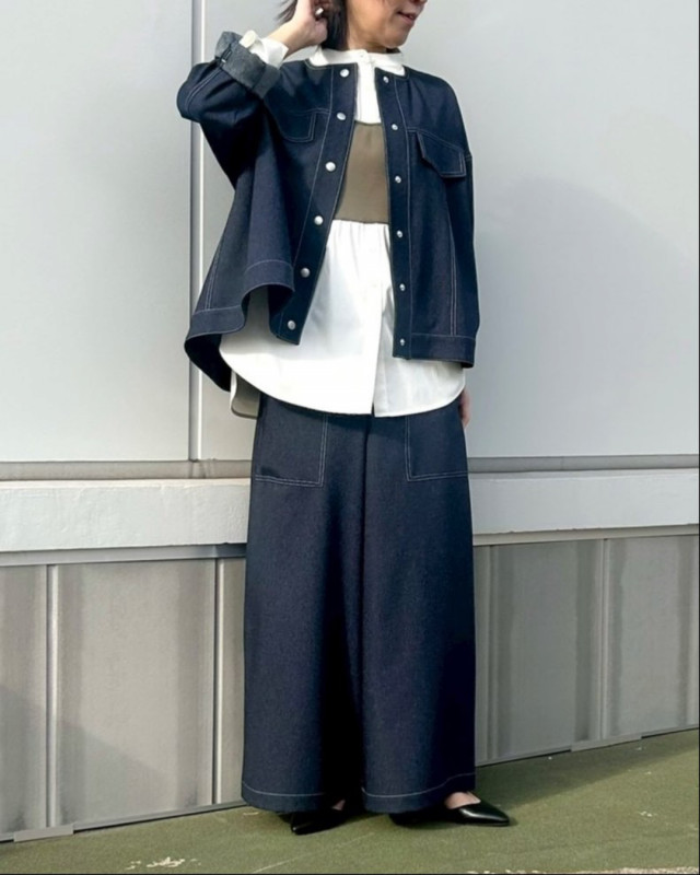 シンプルなボトムと合わせるだけでバランスよく決まります。
