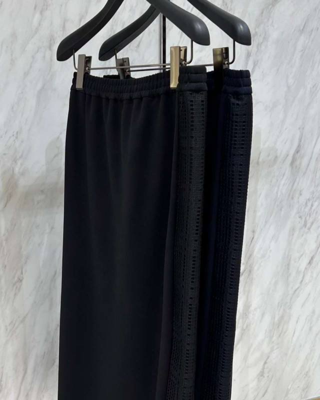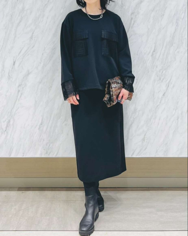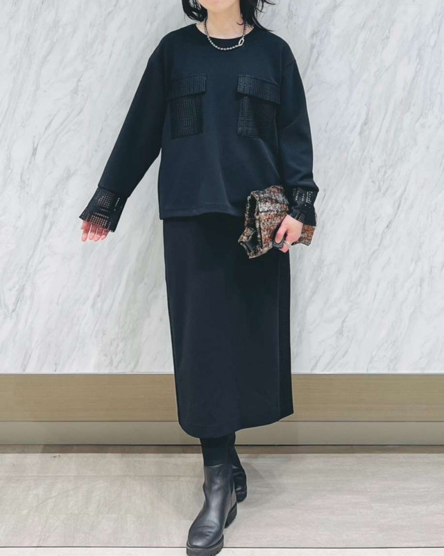レースコンビデザインで上品に華やぐ、ジャージー素材のキレイ目セットアップ