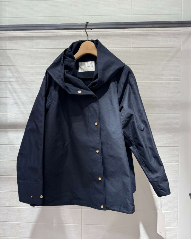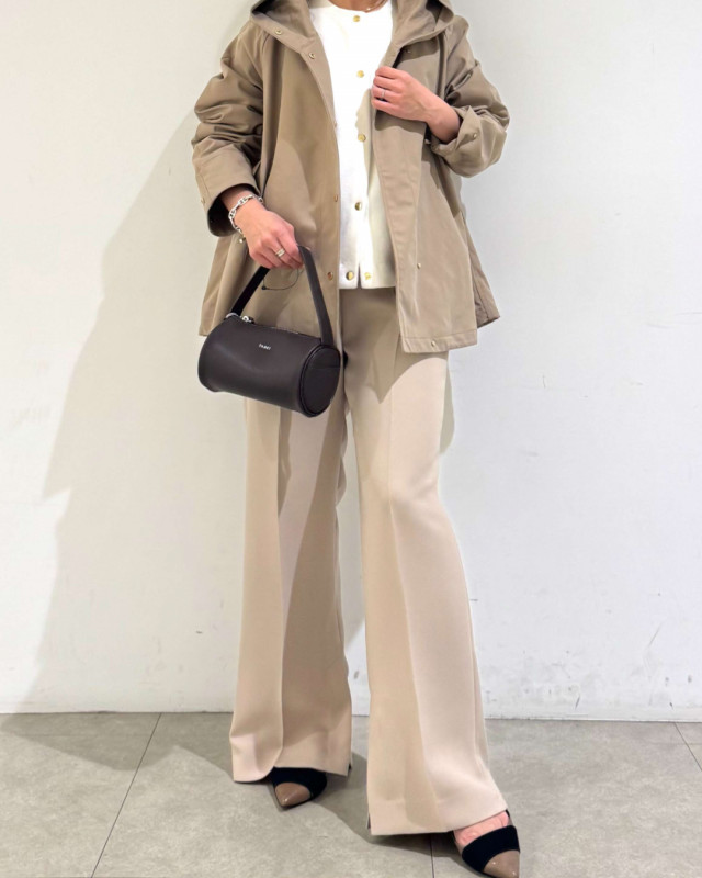 ゴールドのスナップが上品さを添え、カジュアル過ぎないのでオンオフ兼用で着回ししていただけます。