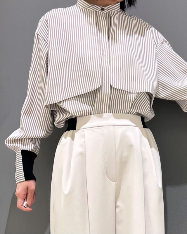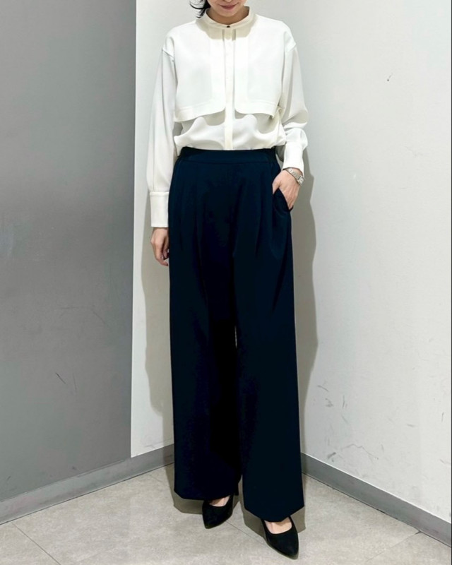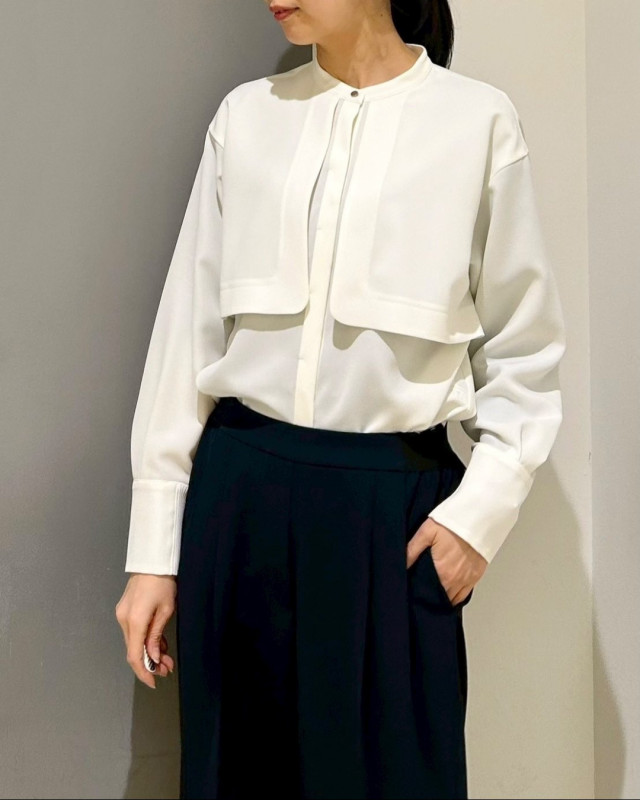 ジャケットの中でも一枚でもこなれた印象に仕上がる、存在感のあるブラウスです。