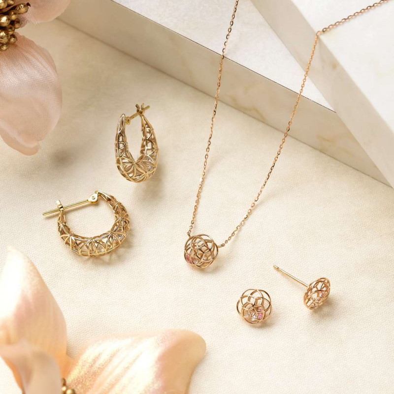 明るく上品な色味のK10ピンクゴールドでお作りした、フェミニンな印象のカゴの中には、