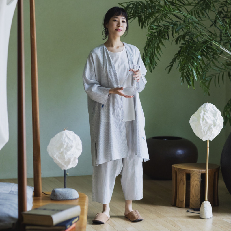 手紡ぎ手織りの生地や手刺繍を使った羽織やチュニック、パンツなど体を優しく包む服たち。ご自宅でリラックスしたい時や、ちょっとそこまでのお出掛けにもおすすめです。