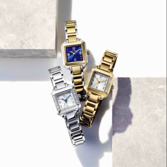 スクエアフェイスのサイドにダイヤモンドをあしらったラグジュアリーなデザインやスタージュエリーらしい“CROSSING STAR”があしらわれたデザイン。