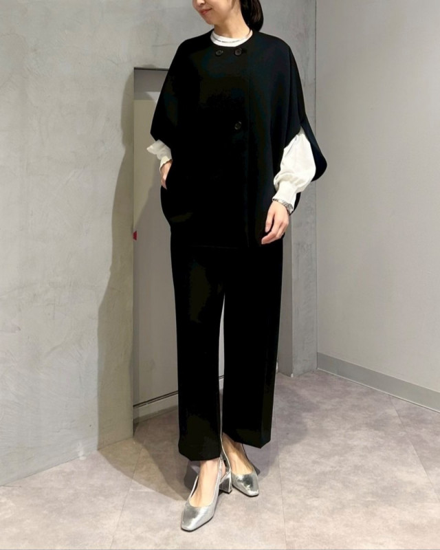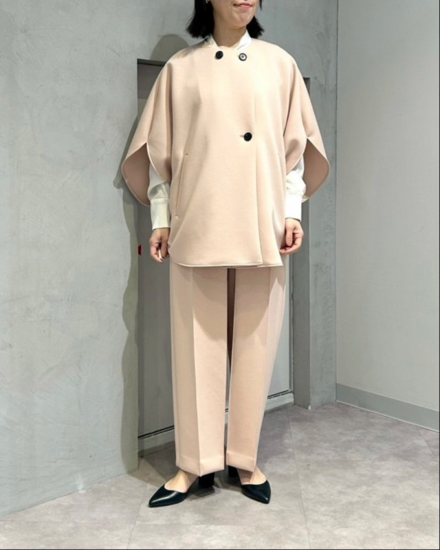 同素材パンツとのセットアップスタイルもおすすめです。