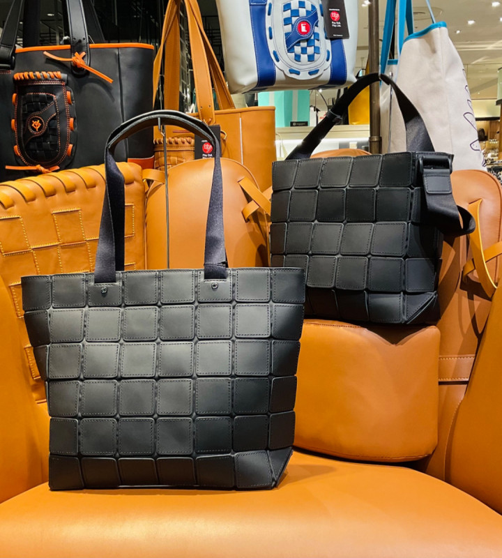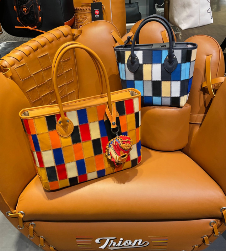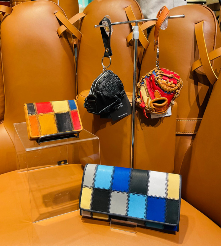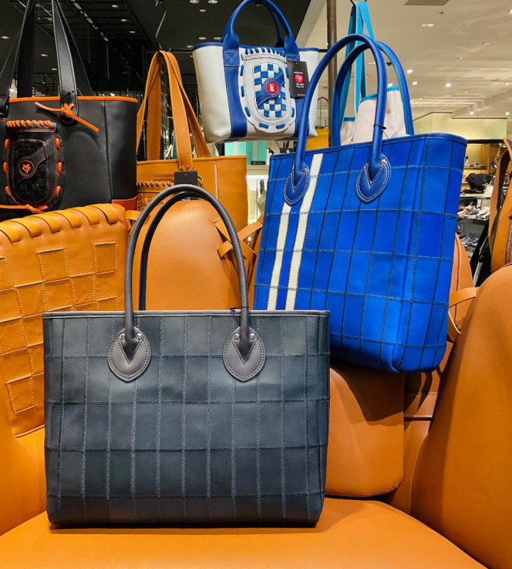 メジャーリーガーのグラブにも使用する最高級のグラブレザーを贅沢に使ったバッグや野球グラブの生産時に出る端材をアップサイクルしたレザートートを展開。