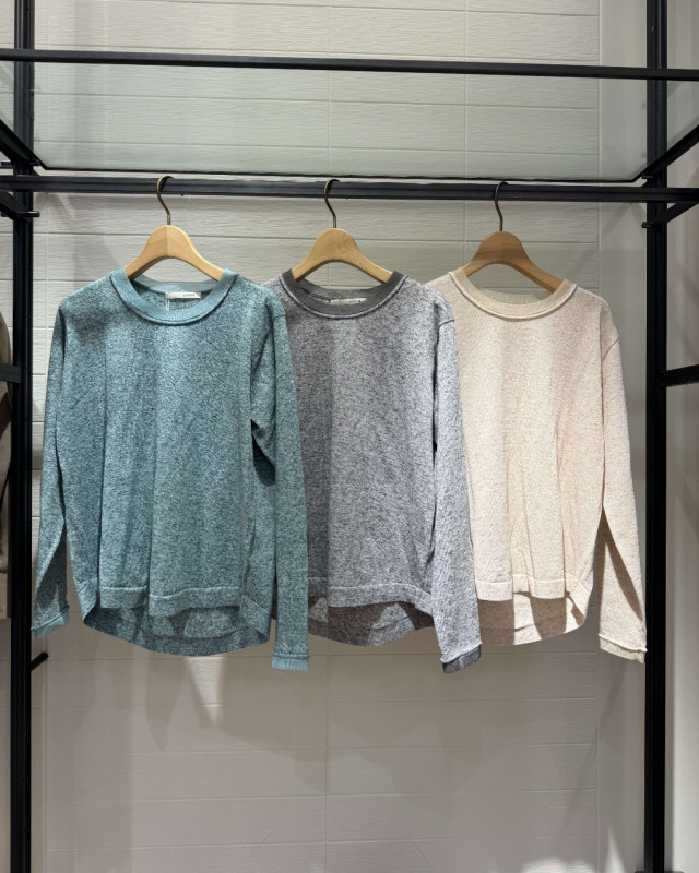 また前回紹介した、シアーミックスニットプルオーバーとアンサンブルで着るのもおすすめです。