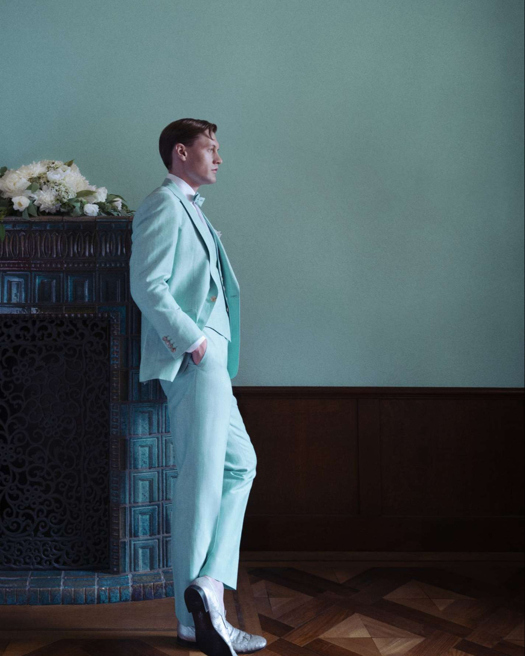 祝福と喝采に満ちた一日。晴れの日にふさわしい、清涼感溢れるスペアミントブルーのリネンで仕立てた逸着は、初夏の陽光をやわらかく受け止め、祝宴にふさわしい華やぎを宿します。