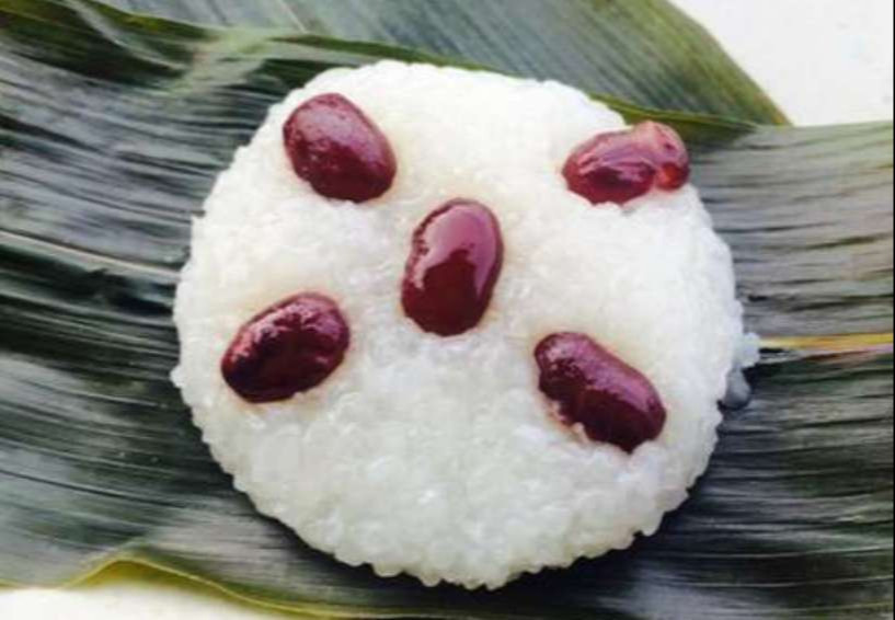 これを2枚の笹の葉で座布団のようにして包んで、最後に紐で結んで蒸し上げます。