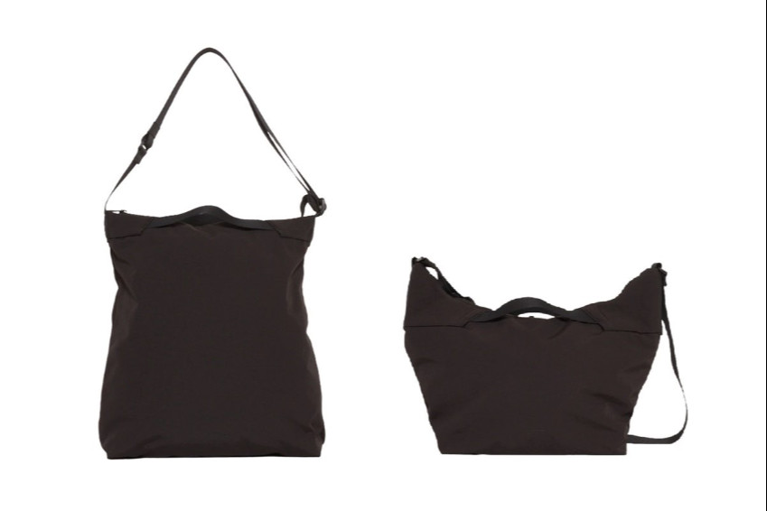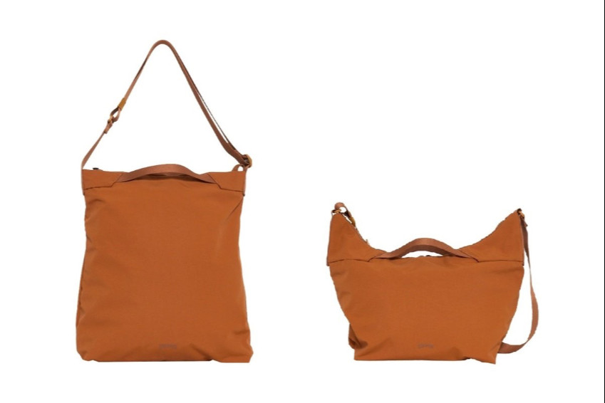 さりげなくアクセントとなる、ハンドル部分のテープ使いが特徴です。メイン素材はソフトで柔らかな質感のリサイクルナイロンを使用しています。本体の開口はファスナー仕様で、背胴部分にあるアウトポケットはホック開閉式になります。軽快な使用感を意識して、内部には仕切りポケットを配した作りになっています。💁♀️