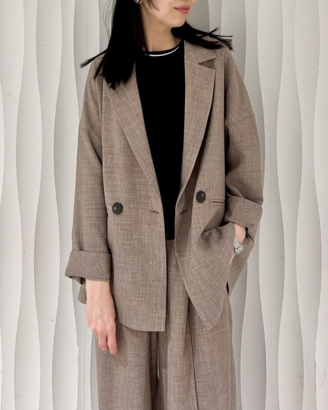 リネンのようなナチュラルな風合いが魅力のセットアップです。