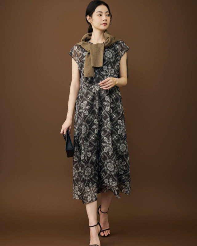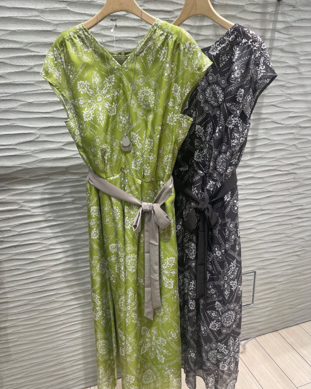 すっきりVネックで着こなせる大人の柄ワンピース⭐︎