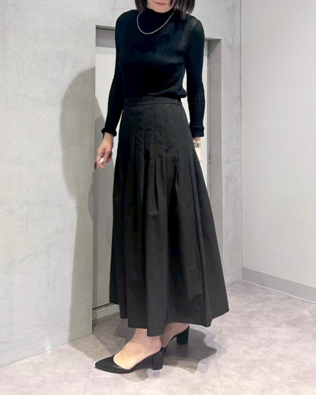 繊細なタック使いで立体感のあるシルエットのロングスカートです。