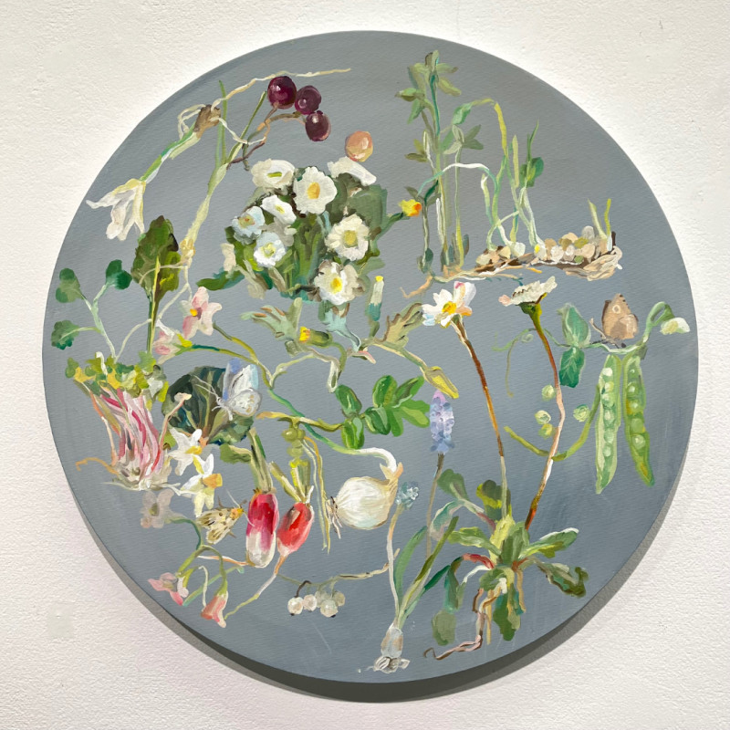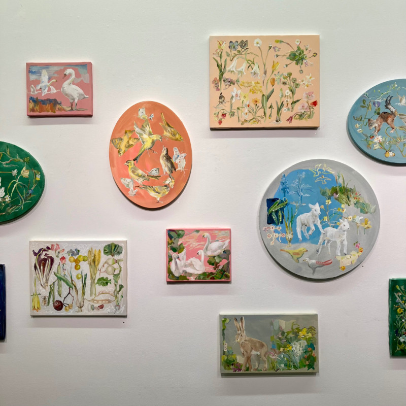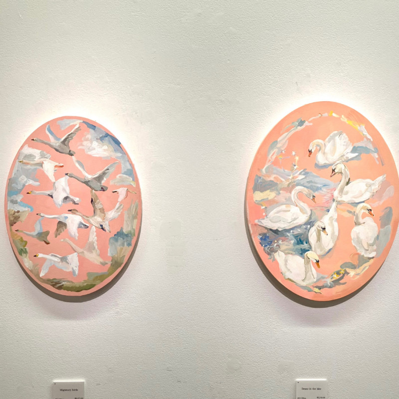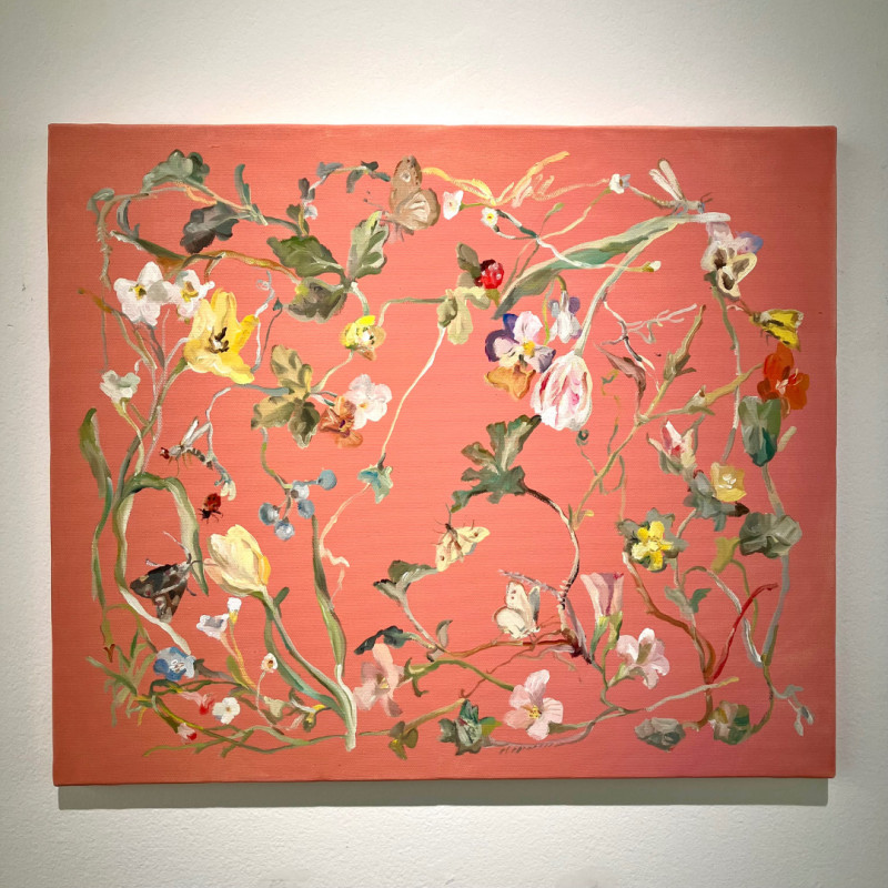 庄島歩音さんは、身近な動植物をモチーフに鮮やかな色彩と、やわらかくのびやかな筆致で独自の世界観を描き出します。