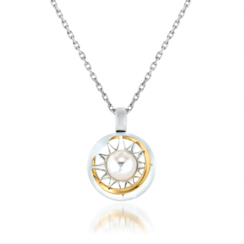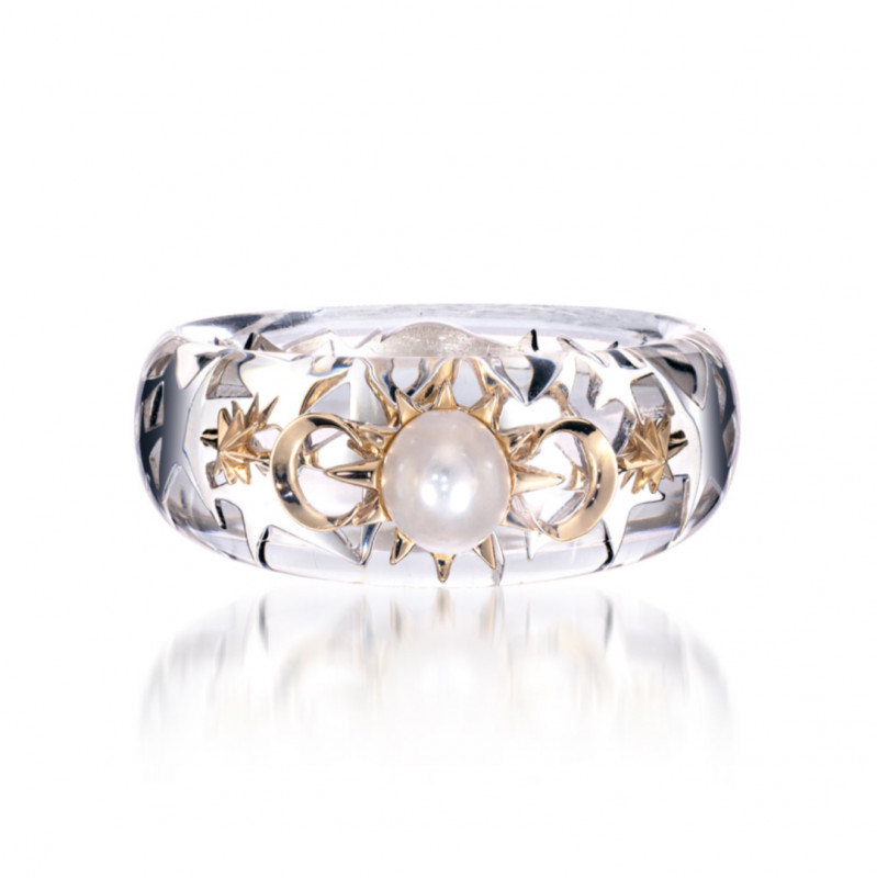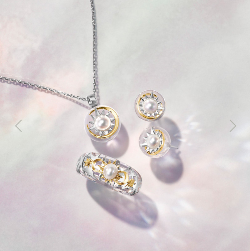 太陽の周りを月の造形で包み込むようなクラフトマンシップ光るデザインは、艶やかなパールをポイントに添え、より上品な印象になるよう仕上げました。