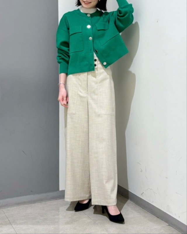 パッチポケットや配色ボタンがアクセントになり、シンプルながらも着こなしにニュアンスをプラス。