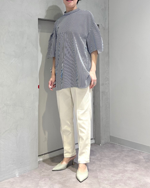 幅広いスタイリングに活躍するブラウスです。