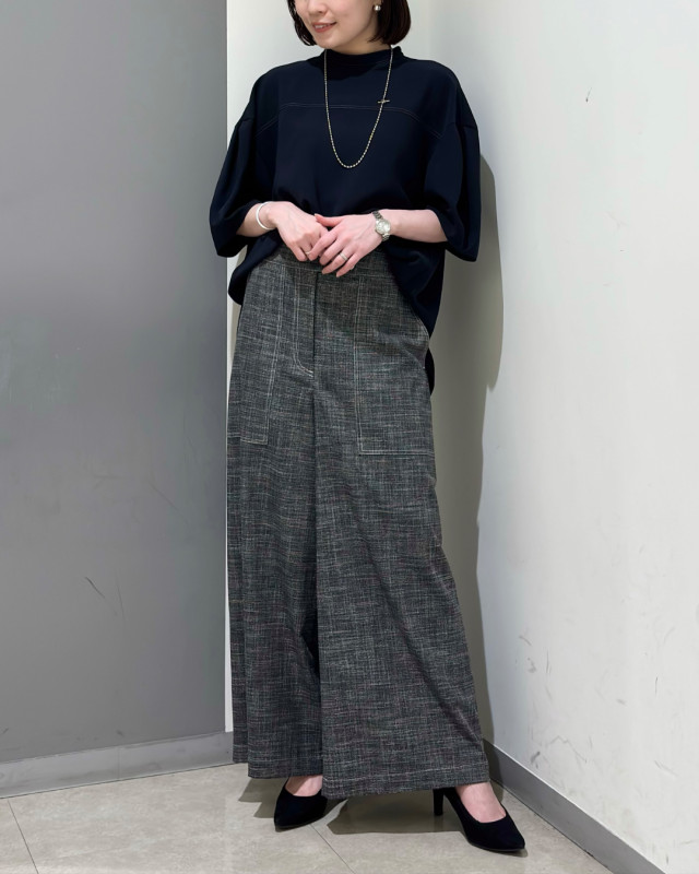 さらりとした落ち感のある素材で、上品な印象に。