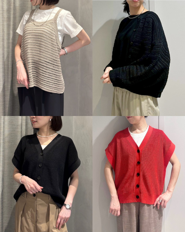 カーディガン・キャミソール・ジレと、それぞれ異なるデザインで、幅広いスタイリングに対応。
