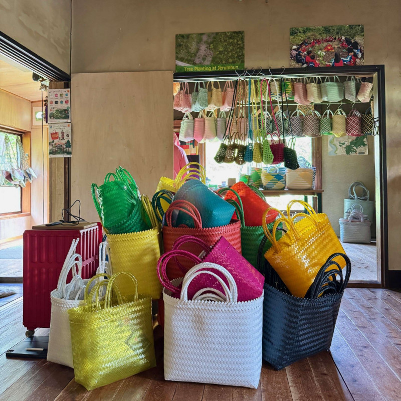 カゴバッグを1つお買上げ頂くと、オラウータンの暮らす森に植樹され、森をつくっていきます。