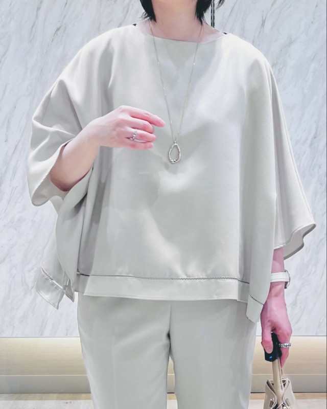 ゆったりとしたスリーブデザインが二の腕をカバーしつつ、手首を華奢に見せてくれるのも嬉しいポイントです!
