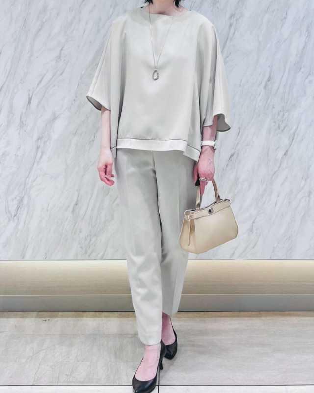 オフィスワークから休日のお出かけまで、オンオフ問わず幅広いシーンで活躍する一着です♪
