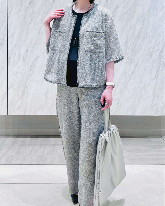 ショート丈でさまざまなボトムとバランス良く合わせられます。単品使いはもちろん、同素材のワイドパンツとのセットアップでの着用もおすすめです。