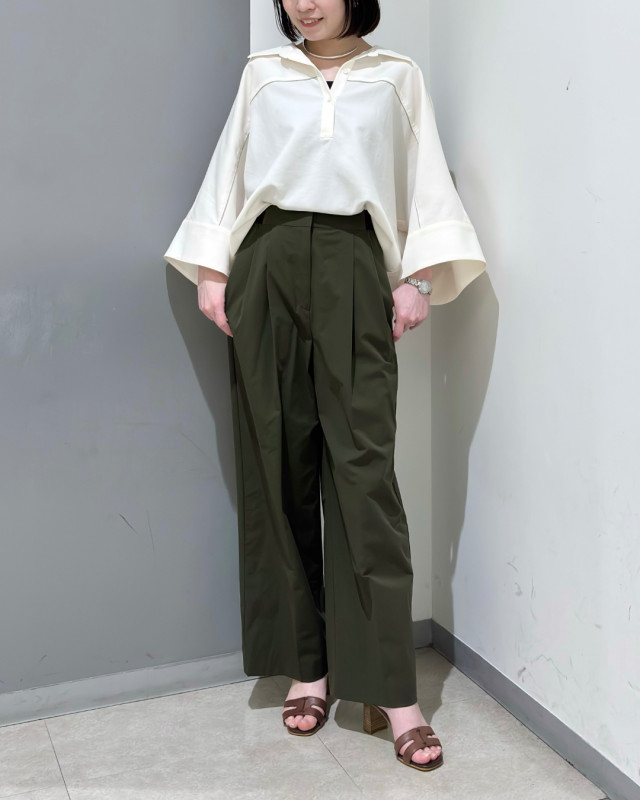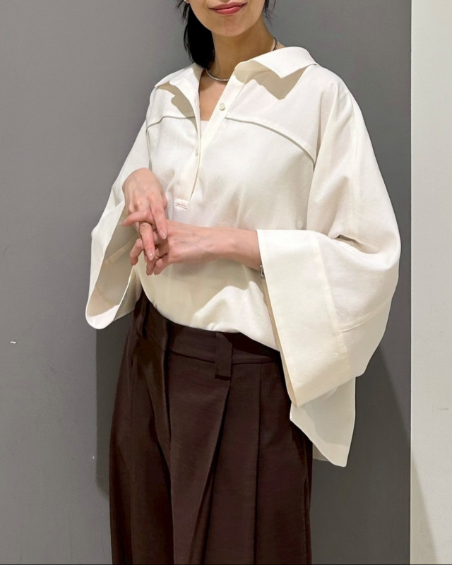 抜き襟でも着こなしやすく、軽やかな印象に仕上がります。