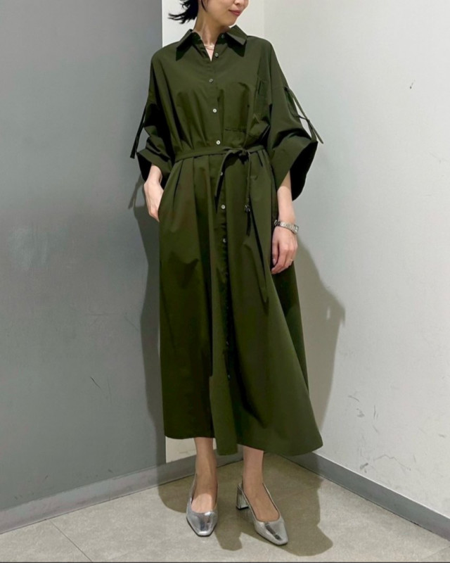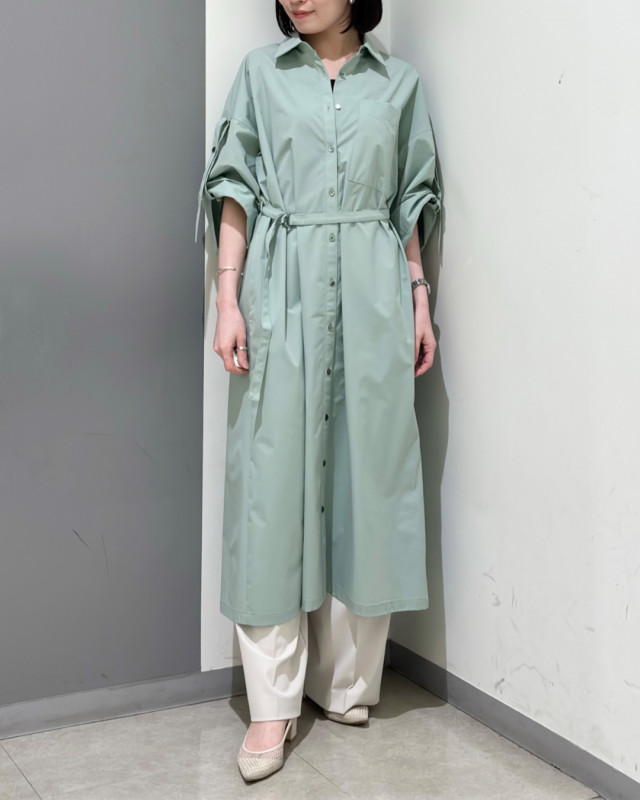 雨の日も晴れの日も快適にお召しいただける、はっ水機能付きのシャツワンピース。