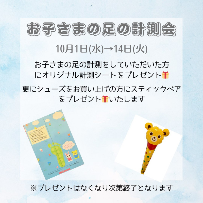 運動会シーズンになりました🍂 お子様の足にピッタリなお靴を選んでみませんか😊? 小さなお子さまの足は3、4ヶ月から半年でサイズアップしていきます。 そろそろサイズ…大丈夫かなぁ?と思ったらぜひお気軽に計測にお越しください。