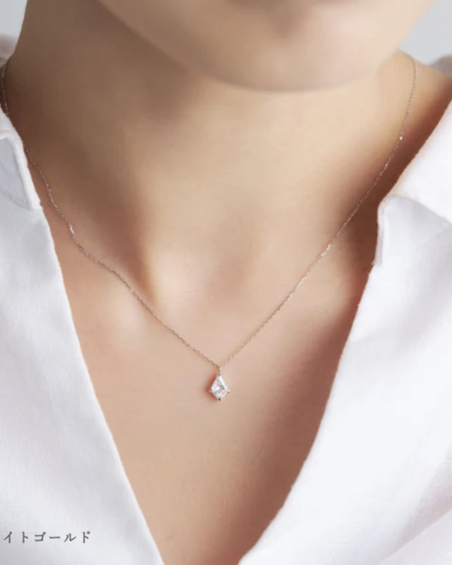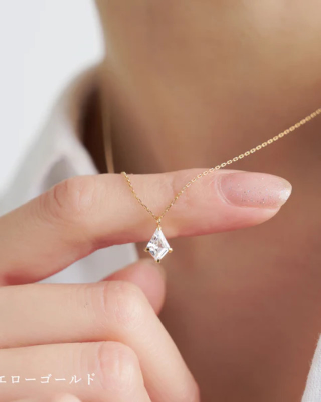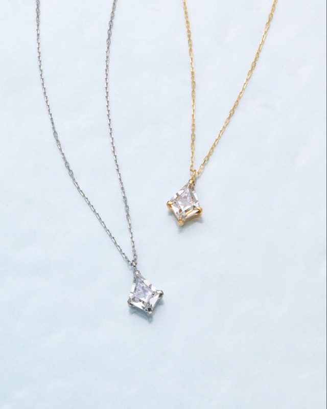 光を受けて美しく輝くキュービックジルコニアを使用し胸元に上品な華やかさを添え、シンプルでありながら存在感を演出してくれるペンダント。