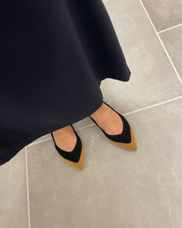 シックなカラーとブラックのコンビネーションが洗練されたデザインは、ポインテッドのフォルムを美しく彩ります。