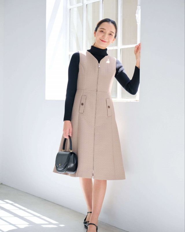 Aラインシルエットできれいめな印象ですが、ファスナー仕様で程よくカジュアルさをプラスし、幅広いシーンで着用できるデザインに仕上げました。