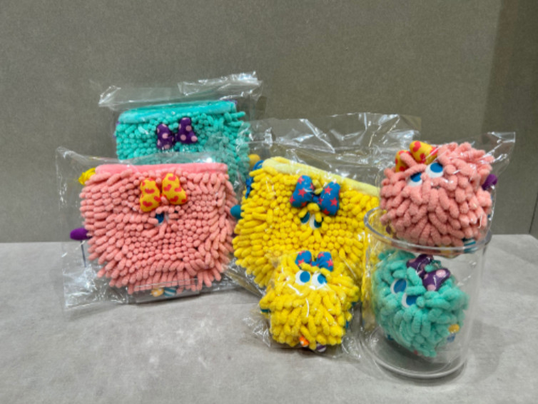 かわいいカラバリのモジャモジャ達のマスコットと巾着が入荷しましました♪