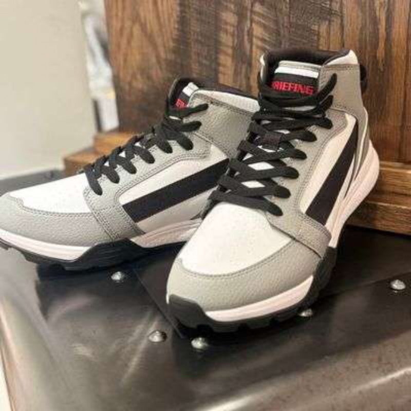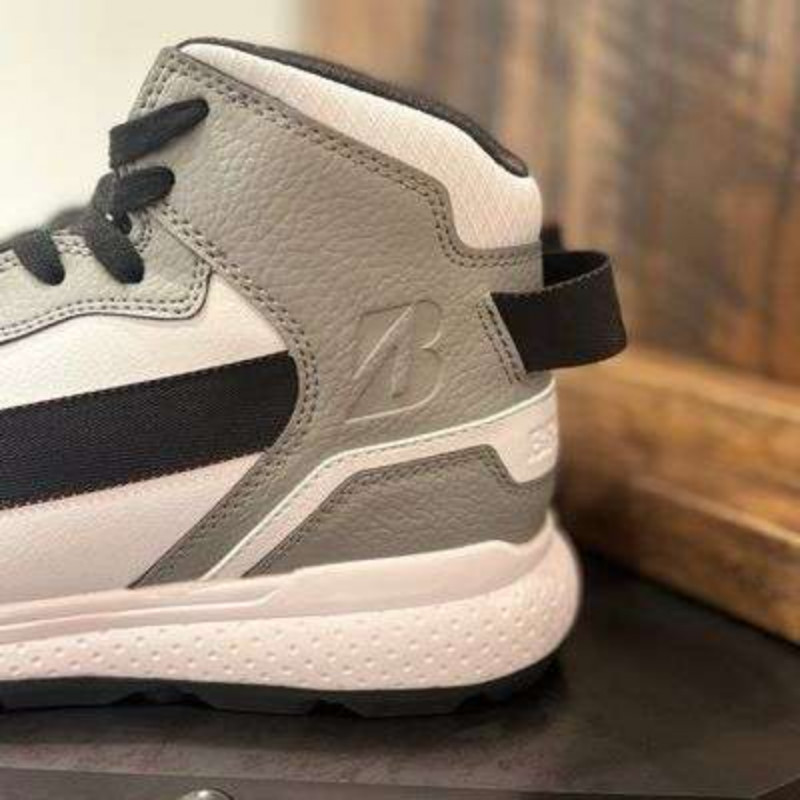 グレーとコンビカラーになっており、パッと目を引くカラーリングに。ハイカットでより足首のホールド感が高まり安定的な履き心地です。